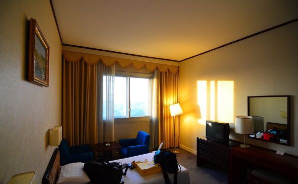 A 47 story, 1,000 room behemoth conveniently located on Yanggak Island in the middle of the Taedong River.